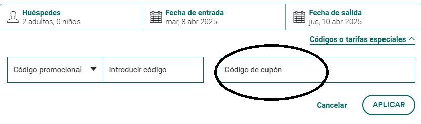 Este código estará activo desde hoy hasta el 16 de noviembre de 2025 y puede utilizarse sin problema tanto para estancias de una noche (19–20 de noviembre) como para dos noches (19–21 de noviembre).